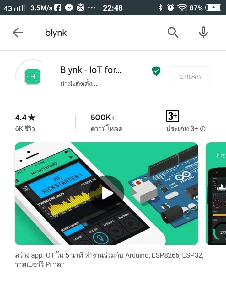1. นำมือถือที่จะใช้เป็นตัวควบคุมอุปกรณ์ ลงแอปพลิเคชัน Blynk
